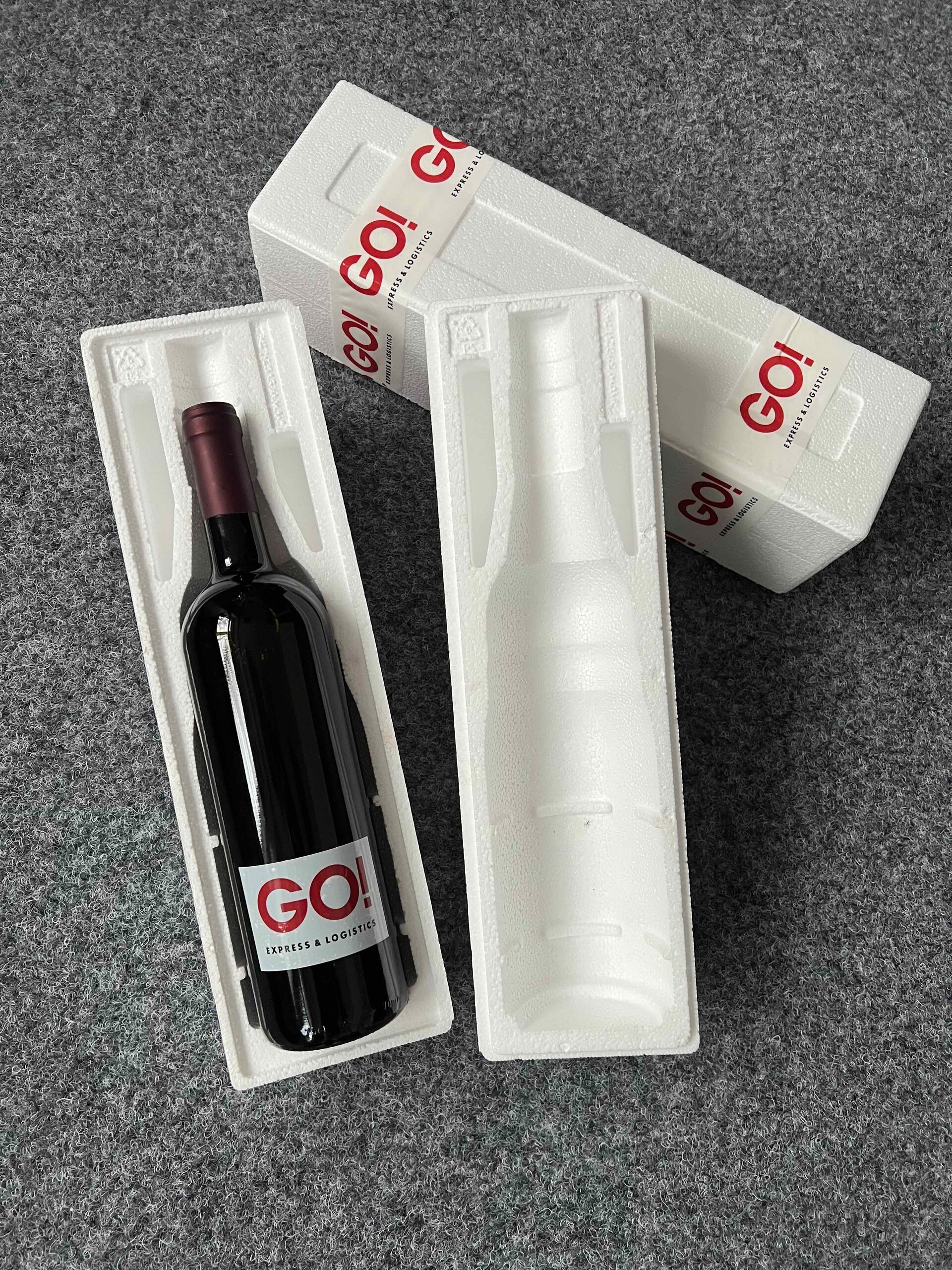 je ideálním řešením pro jednokusové balení. Polystyrenový box je díky vylamovacím dílům univerzálním řešením pro jakýkoliv typ lahve o objemu 0,75l. Box už není potřeba vkládat do krabice a nabízí ochranu vín i sektů.