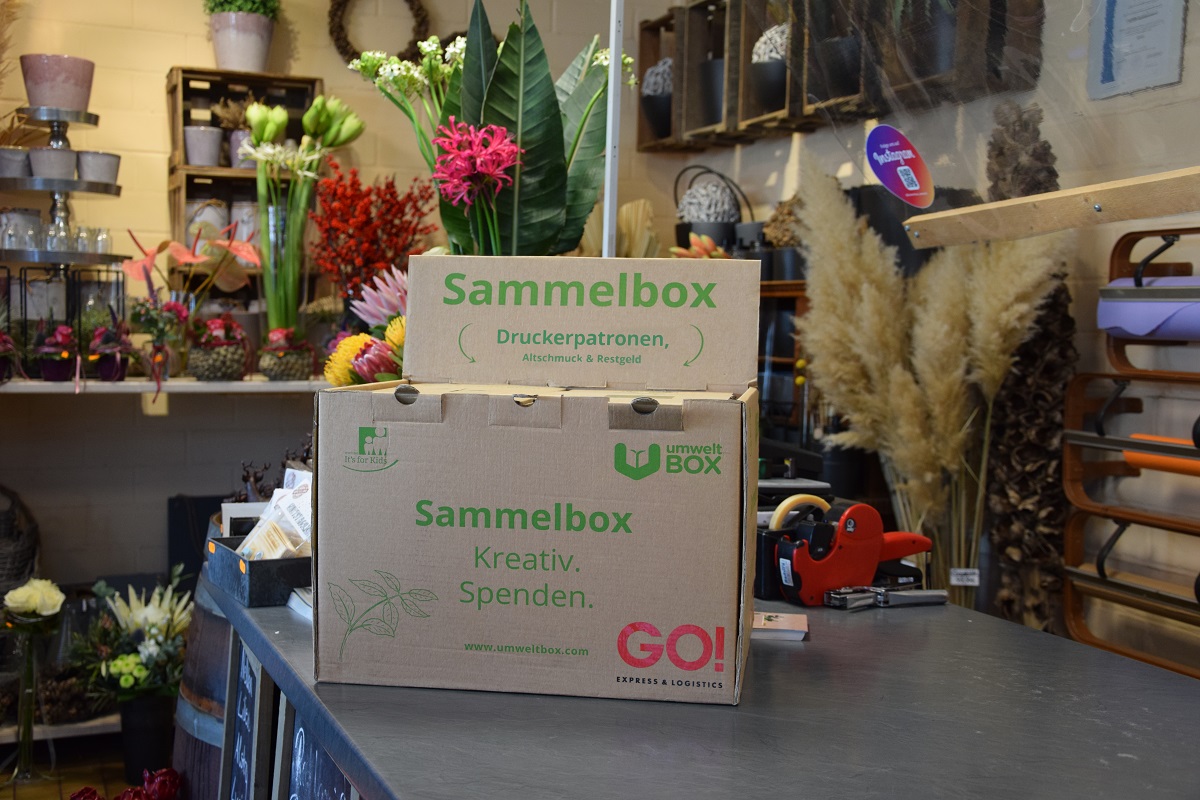 Eine Umweltbox wird zunächst bei 24 von der Stiftung ausgewählten Floristen, die sich gerne an diesem Projekt beteiligen wollen, aufgestellt. Nicht mehr benötigter Altschmuck, Druckerpatronen und ausländische Währungen oder D-Mark der Kundschaft vor Ort werden in der Umweltbox gesammelt. GO! steuert als Beitrag die Lieferung und Abholung der Boxen bei. Nach der Rückführung der gefüllten Sammelbox kümmert sich die Stiftung mit Partnern um die Verwertung der Sachspenden.