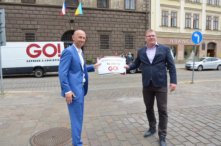 Kolejny ważny dar trafia do miejskiej fundacji Pomáhající Plzeň, która wspiera ludzi w trudnej sytuacji mieszkaniowej oraz uchodźców wojennych z Ukrainy. Kwotę 70 tysięcy koron przekazała miastu Pilzno firma GO! Express & Logistics, s. r. o. W czwartek 26 maja 2022 r. zastępca burmistrza David Šlouf, przed Urzędem Miasta Pilzna, otrzymał symboliczny czek od prezesa firmy - Martina Koča. Obecnie w zbiórce znajduje się ponad 3,2 mln koron. Kilka dni temu z konta wypłynęła pierwsza wpłata, która pomoże w zapewnieniu stałego mieszkania dla kobiety z Pilzna. Miasto rejestruje i rozpatruje inne złożone wnioski o dotacje finansowe z fundacji Pomáhající Plzeň.
